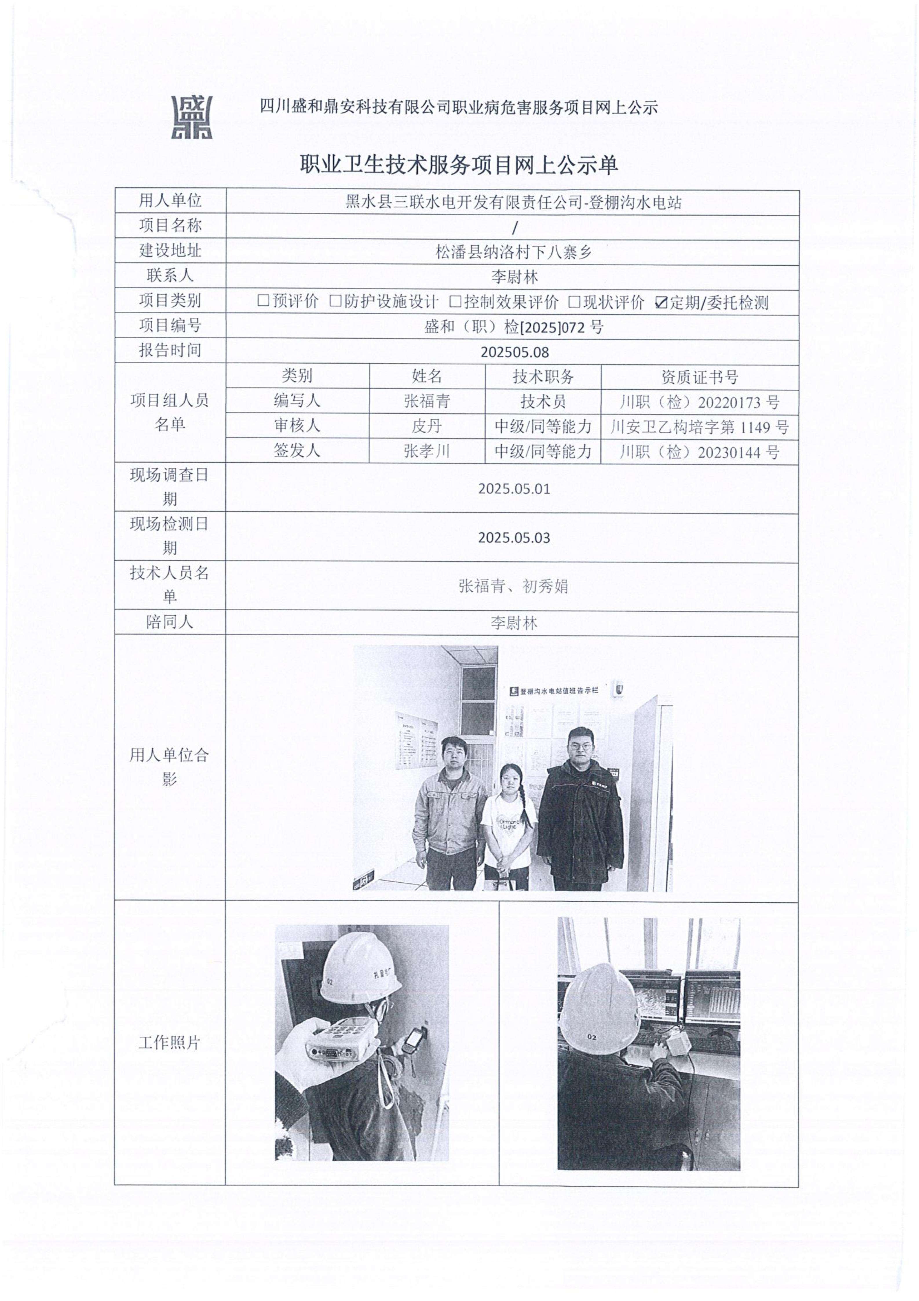 黑水县三联水电开发有限制责任公司-登棚沟水电站
