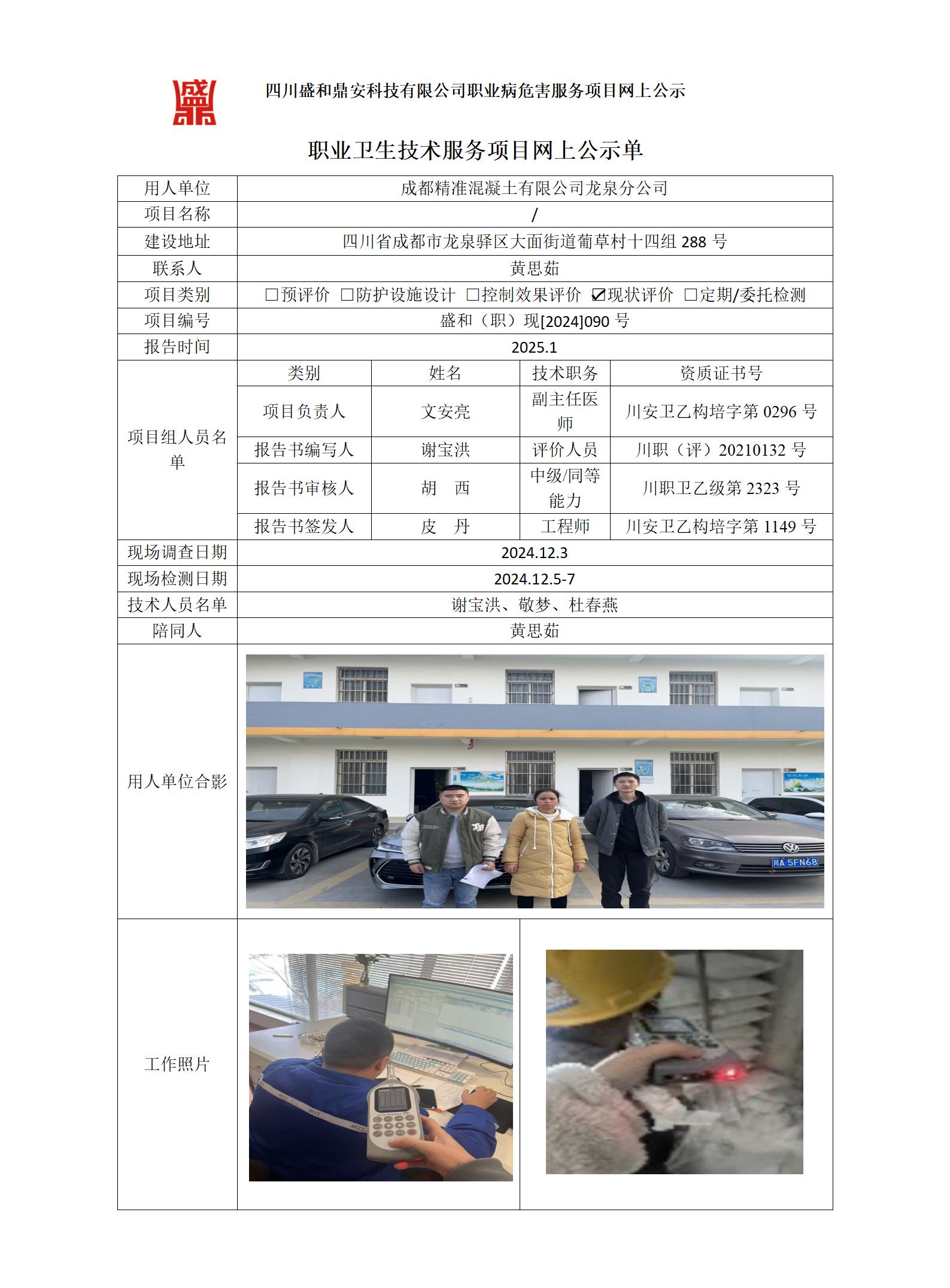 成都精准混凝土有限公司龙泉分公司