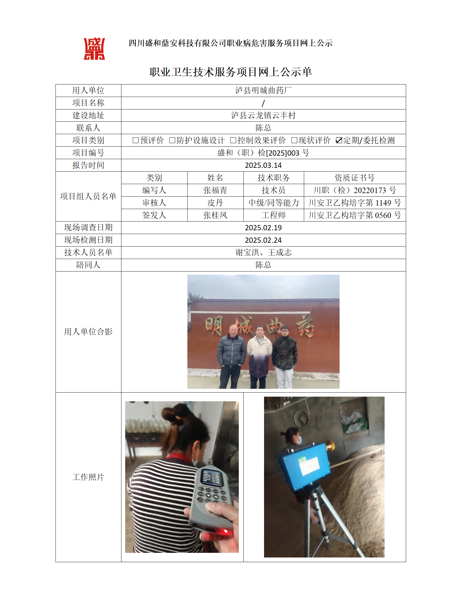 职业卫生检测/评价
