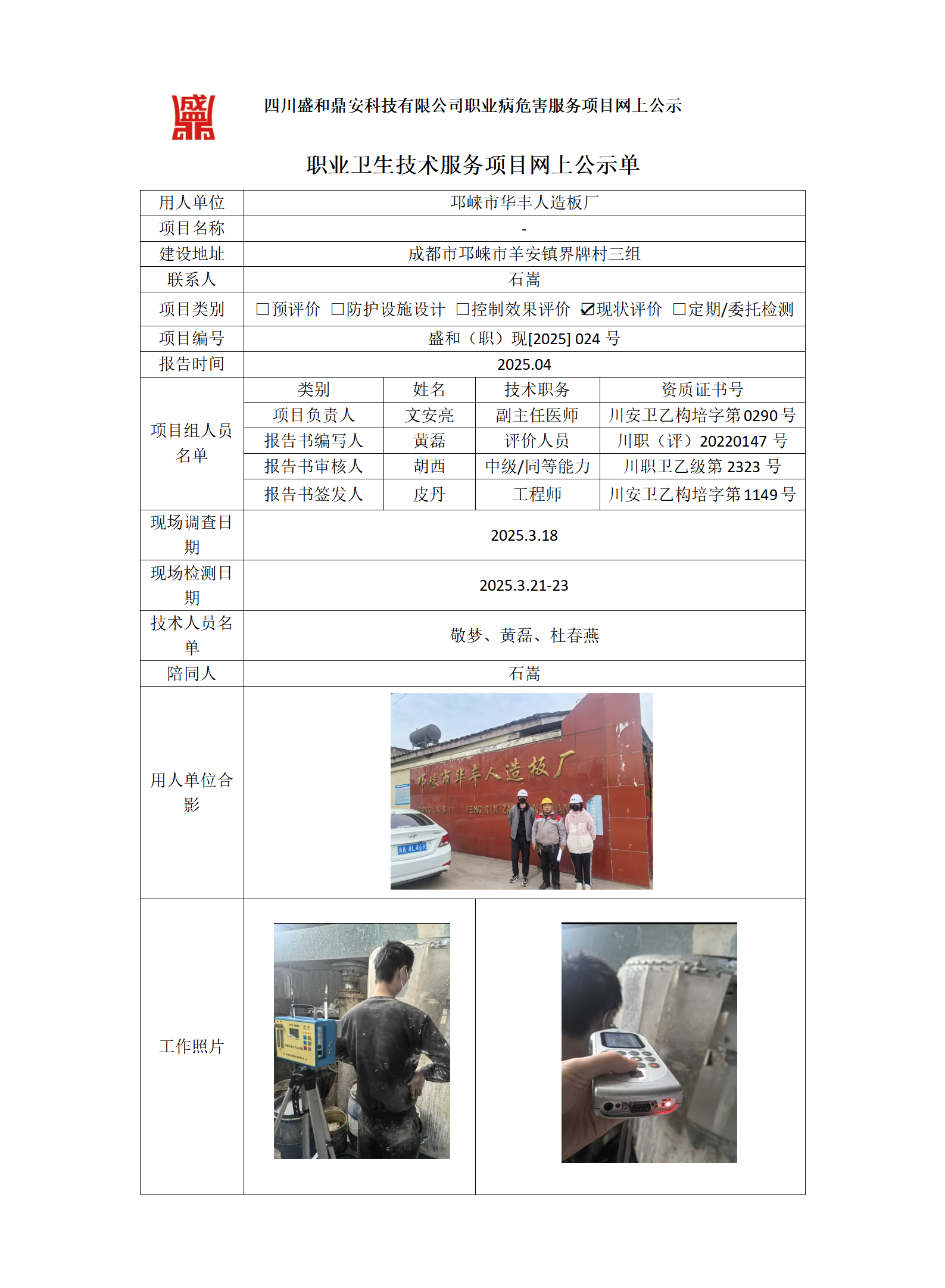职业卫生检测/评价