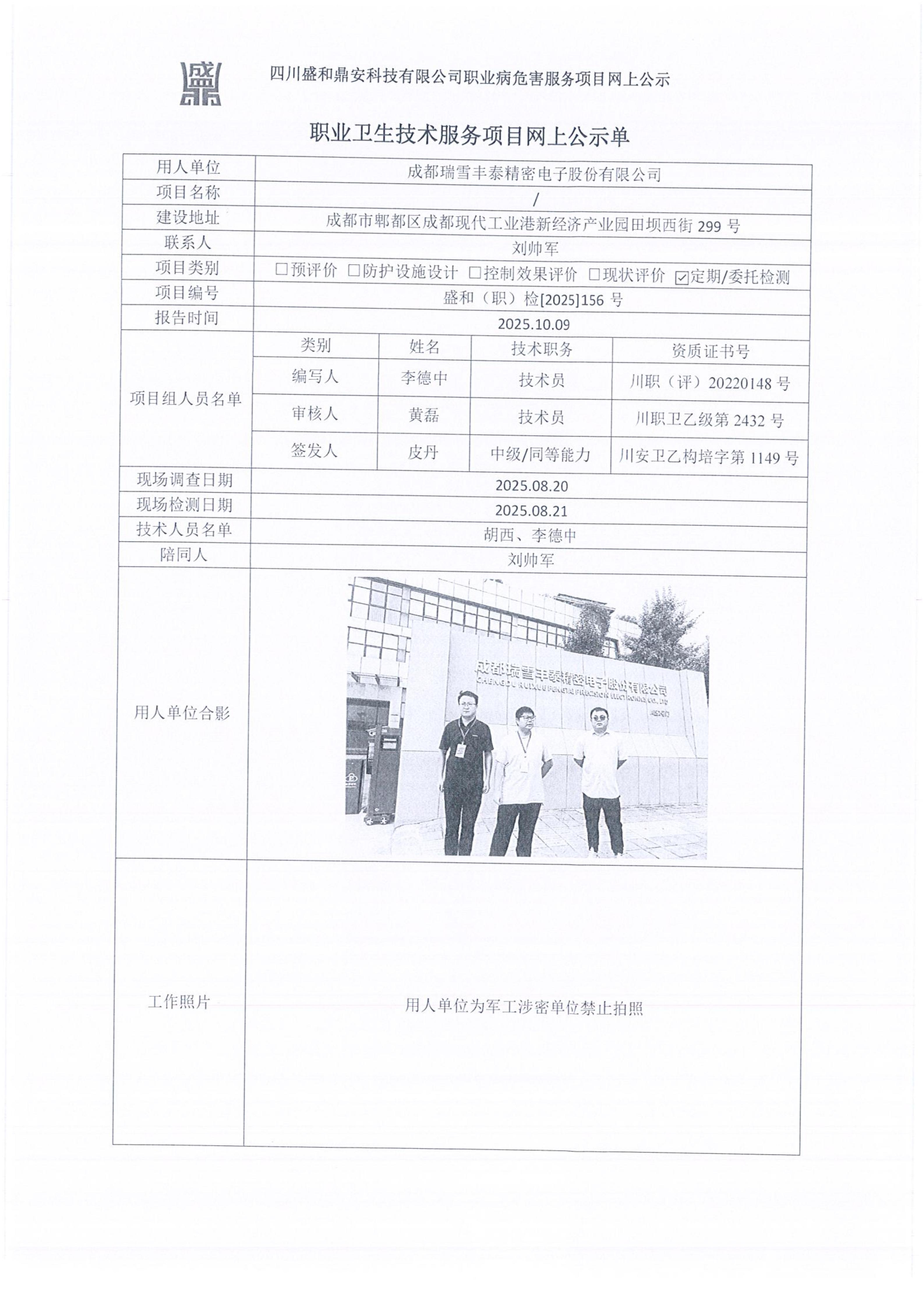 职业卫生检测/评价