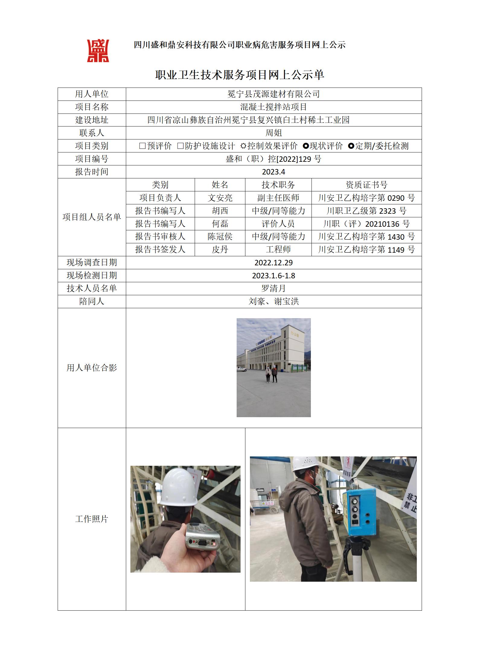 冕宁县茂源建材有限公司混凝土搅拌站项目职业病危害控制效果评价