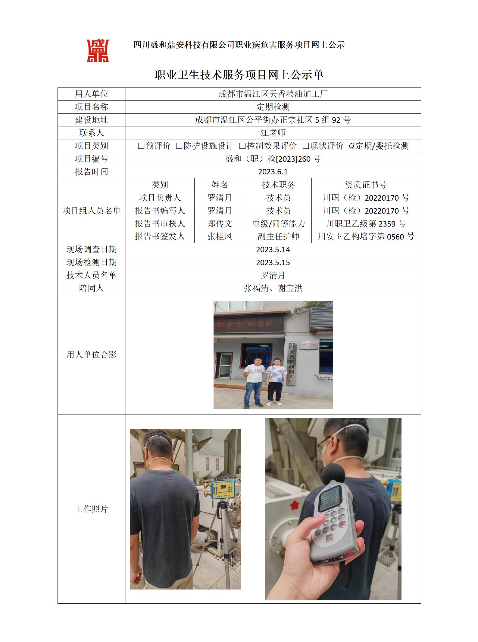 成都市温江区天香粮油加工厂定期检测