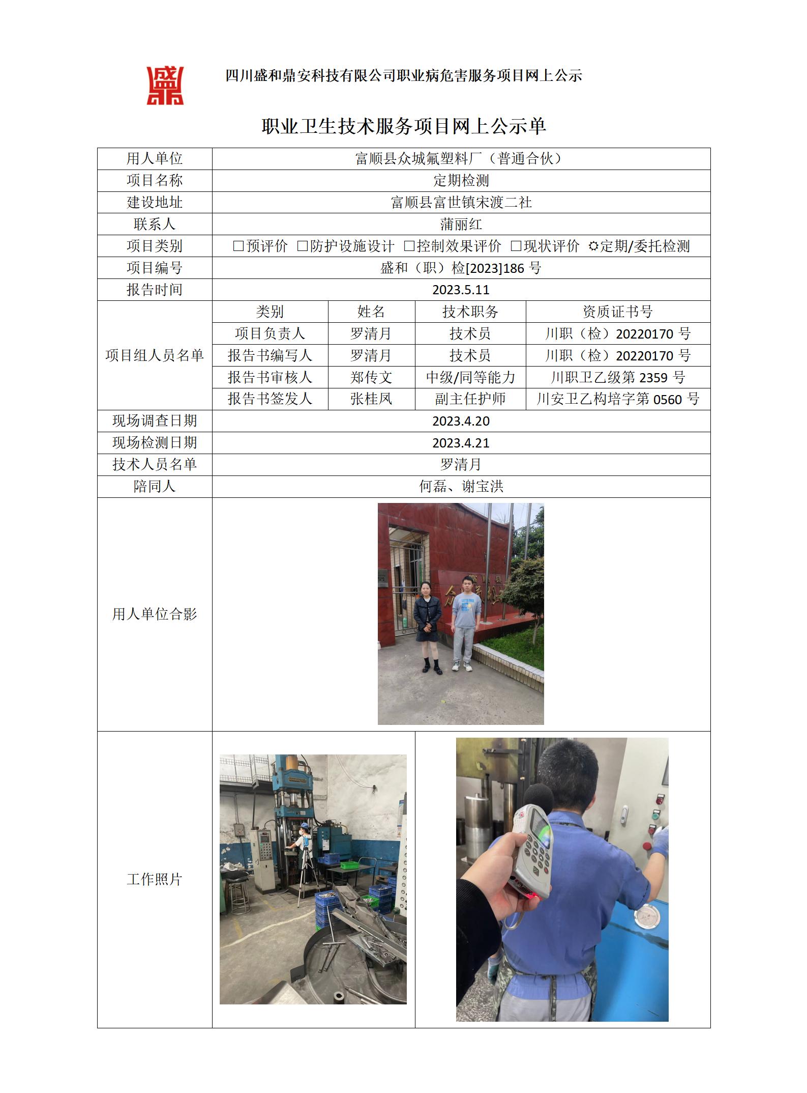 富顺县众城氟塑料厂(普通合伙)定期检测