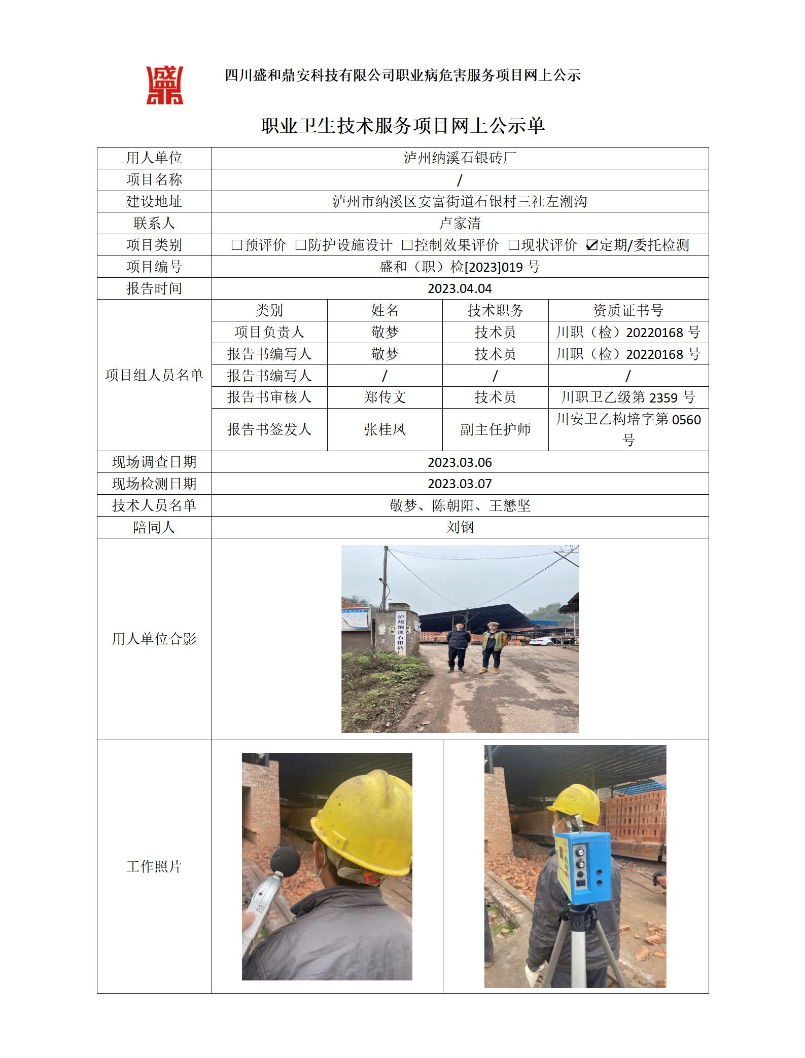 泸州纳溪石银砖厂定期检测